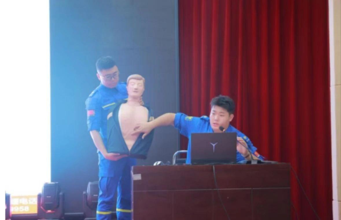 隨后,藍(lán)天救援中心行動(dòng)組組長(zhǎng)賈自齊化身“安全導(dǎo)師”,采用“理論講解+實(shí)操演示”相結(jié)合的方式,圍繞心肺復(fù)蘇、自動(dòng)體外除顫器(AED)操作等核心急救技能展開專題講座,幫助在場(chǎng)師生構(gòu)建起系統(tǒng)的應(yīng)急救援知識(shí)體系。講座現(xiàn)場(chǎng)氣氛熱烈,師生們熱情高漲,積極投入實(shí)操演練。