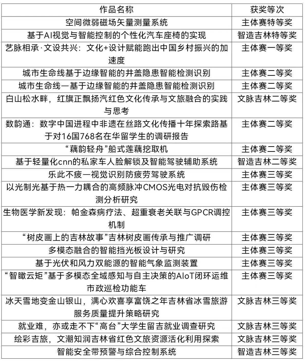 近日,2025年“挑戰(zhàn)杯”吉林省大學(xué)生課外學(xué)術(shù)科技作品競賽圓滿落幕。我校“挑戰(zhàn)杯”再創(chuàng)佳績。參賽作品獲主體賽特等獎(jiǎng)1項(xiàng)、二等獎(jiǎng)3項(xiàng)、三等獎(jiǎng)7項(xiàng);獲“文脈吉林”專項(xiàng)賽一等獎(jiǎng)1項(xiàng)、二等獎(jiǎng)1項(xiàng)、三等獎(jiǎng)3項(xiàng);獲“人工智能+”應(yīng)用賽特等獎(jiǎng)1項(xiàng)、二等獎(jiǎng)1項(xiàng)、三等獎(jiǎng)1項(xiàng)。